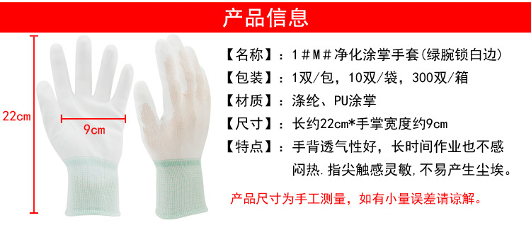 名稱:1#M#凈化涂掌手套(綠腕鎖白邊)
