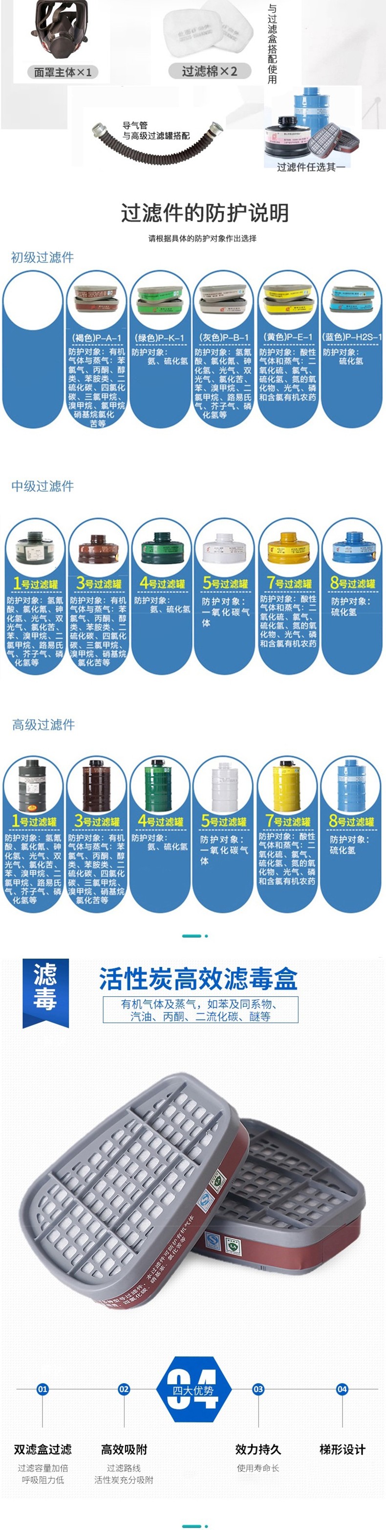 | 功能 | 防有機氣體、蒸汽、氯氣、二硫化碳、醇類、丙酮、硝基苯乙烷等 |