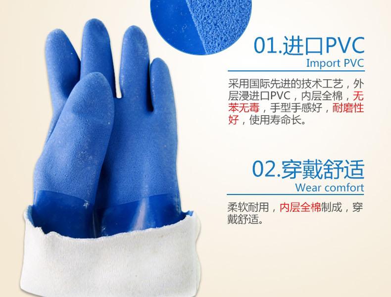 春蕾906加絨耐油PVC手套采用棉布做襯里,聚氯乙烯塑料作外層,具有優良的耐磨性,使用壽命長;