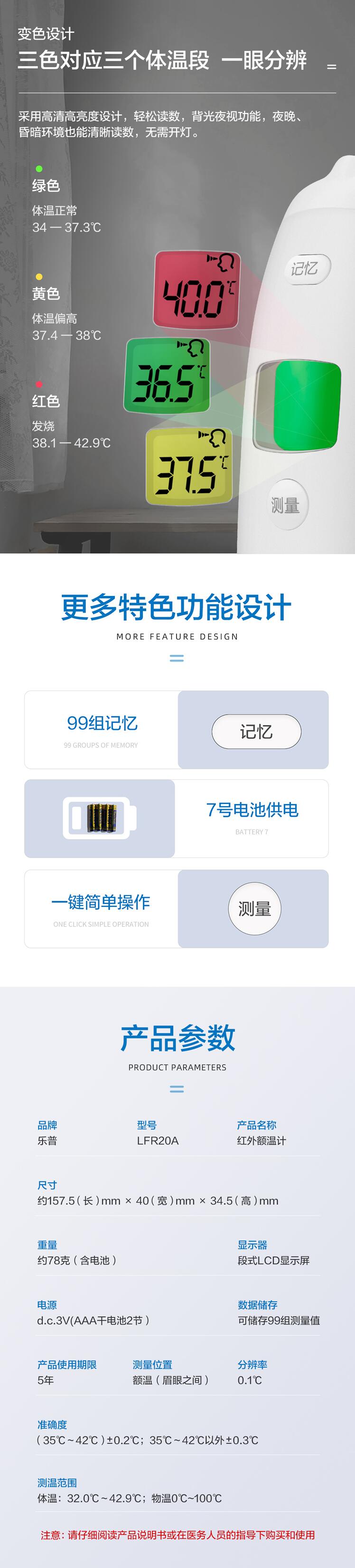 樂普小米粒紅外線電子體溫計家用成人新生兒嬰兒高精度醫用額溫槍。