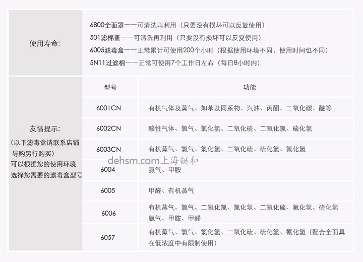 2.防毒:3M6800全面罩配備3M6000系列濾毒盒可提供對某些有害氣體的防護(hù)(具體濾毒盒的選擇需要結(jié)合現(xiàn)場有毒氣體的性質(zhì))