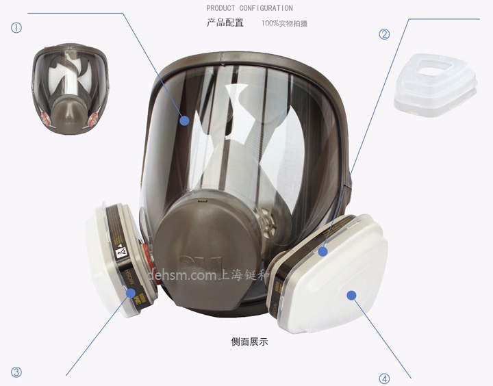 1.防塵:3M6800全面罩搭配3M2091或3M2097高效濾棉可用于防塵;