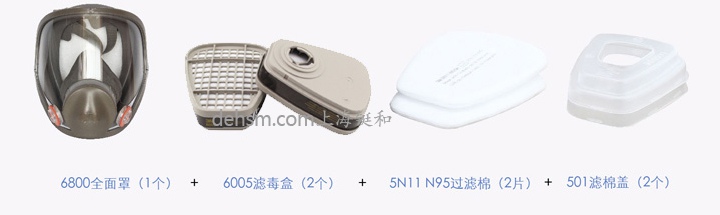 (3M6800防毒面具七件套:3M6800全面罩*1個(gè)、6000系列濾毒盒*2個(gè)、5N11濾棉*2片、501濾蓋*2個(gè))