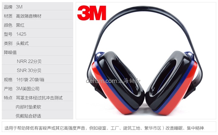 3M1425防噪音耳罩的罩杯經防沖擊設計,經久耐用型防噪音耳罩,內部襯墊柔軟,佩戴貼合舒適,將頭帶置于頭后,可同時佩戴安全帽。3M1425防噪音耳罩隔音效果:22dB。