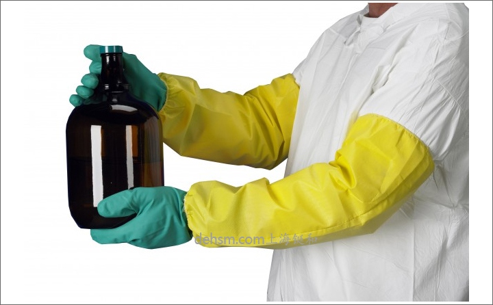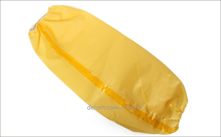 防化袖套采用亮黃色高密度聚乙烯膜,熱合膠帶封邊,整個袖長45厘米,可以有效化學品傷害。