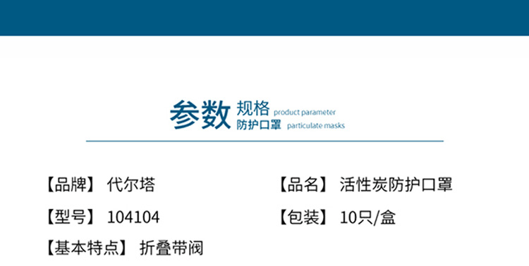 代爾塔104104活性炭防護口罩FFP2防毒口罩