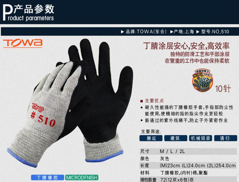 TOWA510丁腈涂層勞保手套耐久性能強的丁腈橡膠手套;